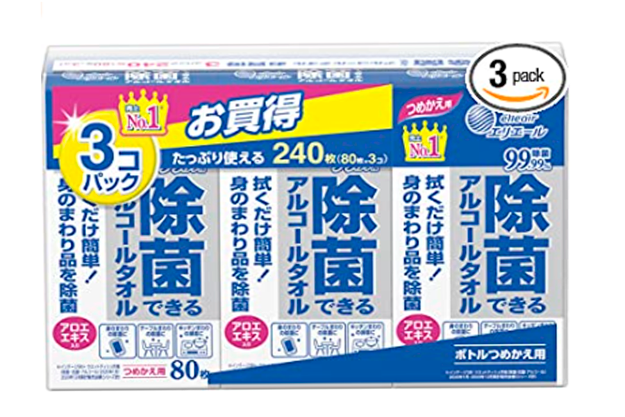 エリエール ウェットティッシュ 除菌 アルコールタイプ ボトル つめかえ用 240枚(80枚×3パック) 【まとめ買い】 ¥812